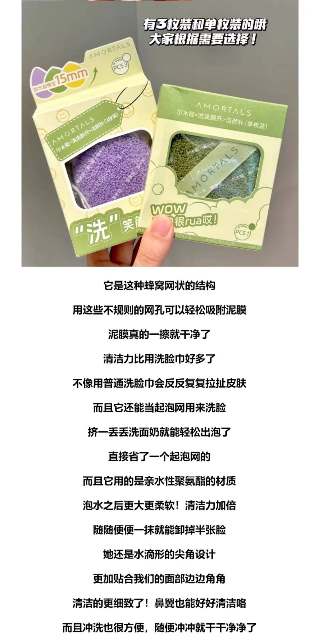 新品!尔木萄洗脸扑海绵粉扑深层清洁擦脸美容专用搓脸鼻翼清洁